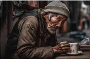 وضع فنجان القهوة أمام الرجل ذو اللحية البهية ببياض كأنه ثلج يتلألأ، انتظر حتى ارتشف أول رشفة وبدت عليه علامات